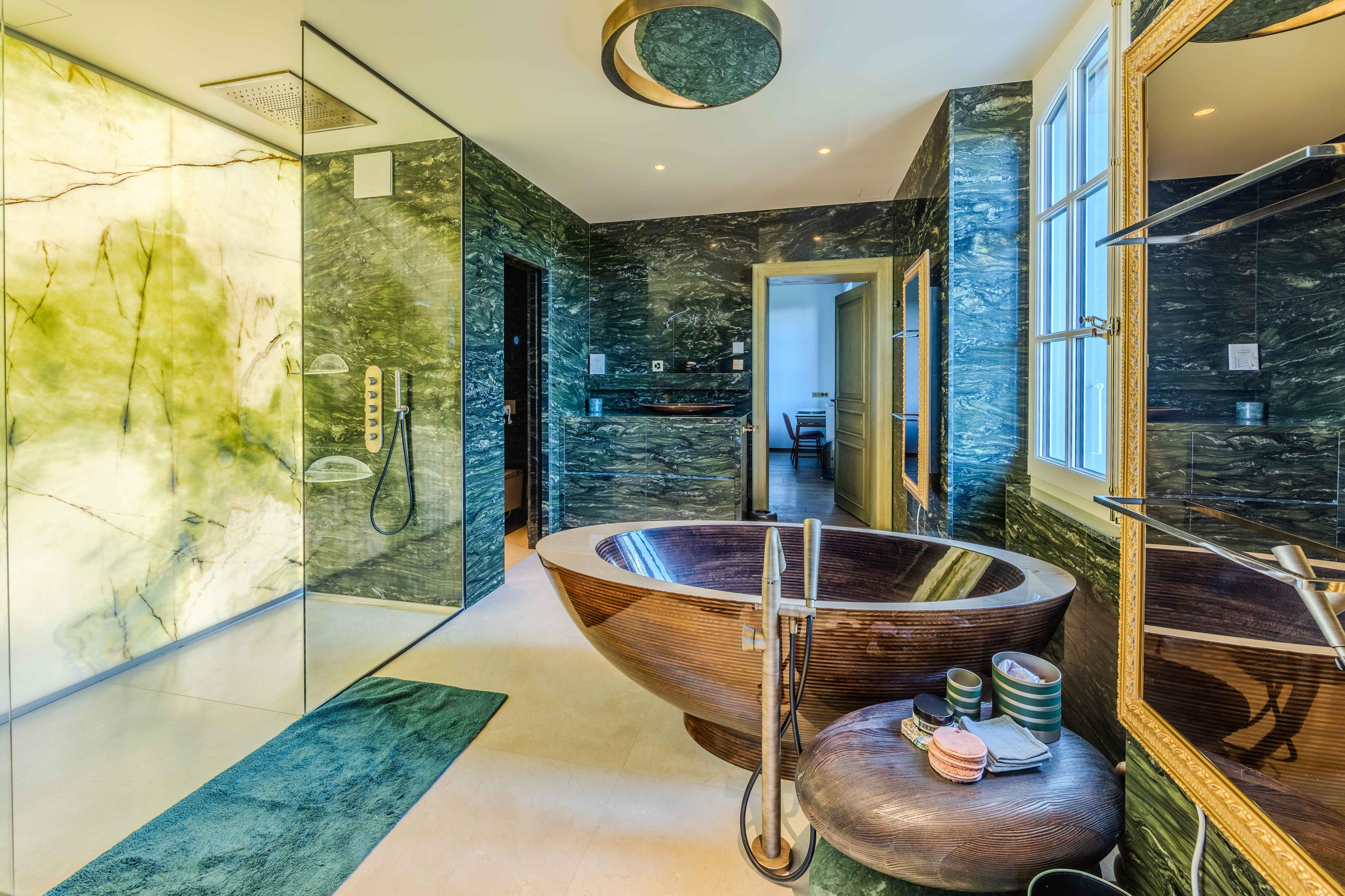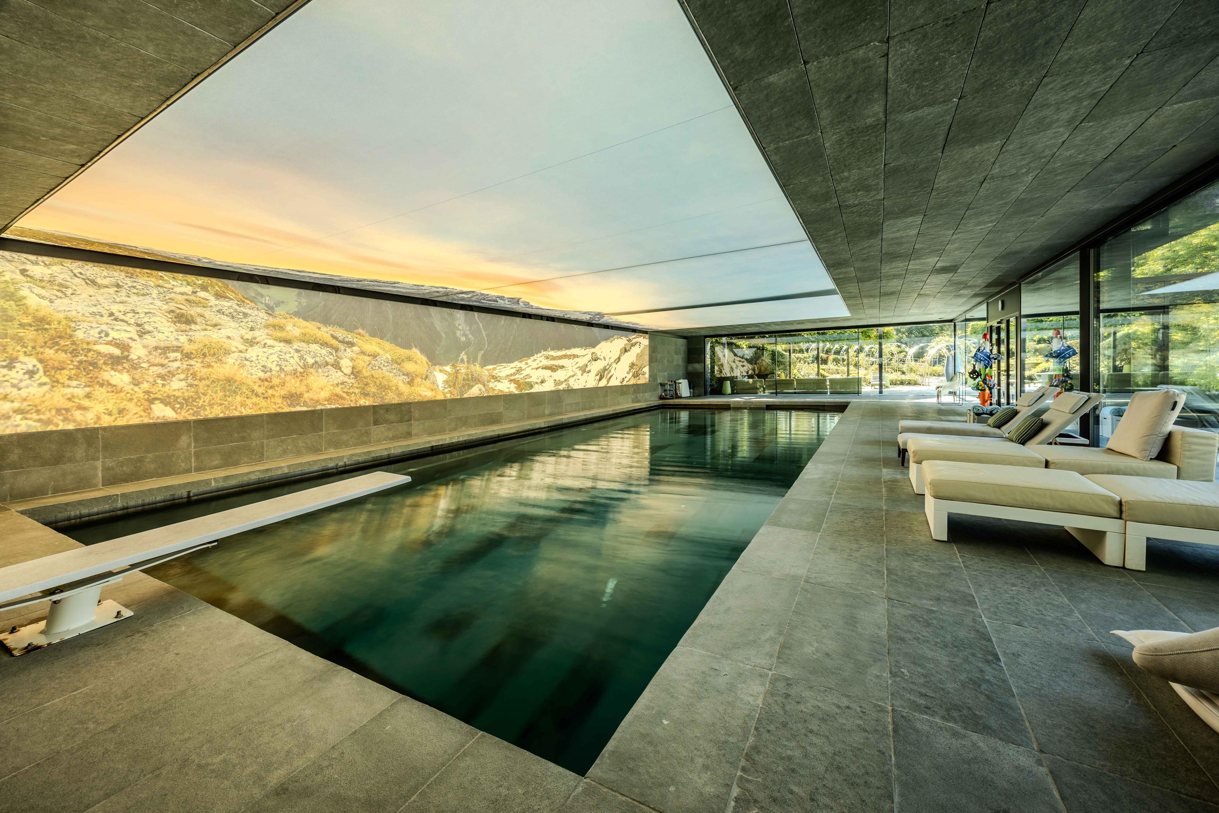 Enfin, un pavillon bien-être abrite une piscine intérieure de 18 x 8 m baignée de lumière naturelle, un spa avec hammam et sauna, ainsi qu’un parking couvert pour quatre véhicules.