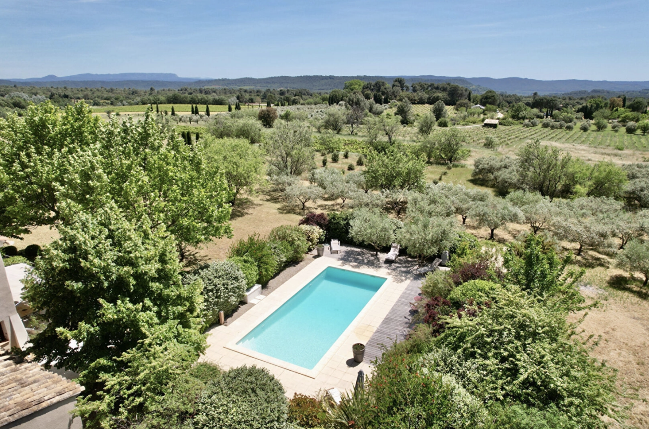 Implanté sur un terrain de près de 4 900 m², le jardin, superbement paysagé, offre une végétation typiquement provençale agrémentée de beaux arbres. Une piscine de 10 x 4 m invite à la détente sous le soleil du Sud.